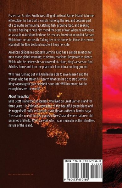 Fisherman Achilles Smith lives off-grid on Great Barrier Island. A former elite soldier he has built a simple home by the sea and become part of a colourful community. Catching fish, growing food, and seeking nature's healing to help him mend the scars of war. When he witnesses an assault in Auckland harbour, he rescues American journalist Barbara Walsh from certain death. Taking her to his home, he thinks the remote island off the New Zealand coast will keep her safe. American billionaire sociopath Dominic King has a simple solution for man-made global warming; to destroy mankind. Desperate to silence Walsh, who he believes has uncovered his plans, King's assassins find Achilles' home and turn the peaceful island into a hunting ground. With time running out will Achilles be able to save himself and the woman who has stolen his heart? What can he do to stop Dominic King's apocalyptic plan before it is too late? Will becoming bait be enough to save the world?