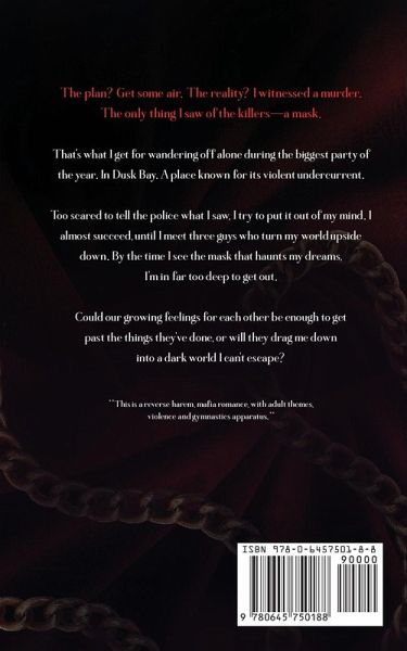 The plan? Get some air. The reality? I witnessed a murder. The only thing I saw of the killers-a couple of tattoos. That's what I get for wandering off alone during the biggest party of the year. In Dusk Bay. A place known for its violent undercurrent. Too scared to tell the police what I saw, I try to put it out of my mind. I almost succeed, until I meet three guys who turn my world upside down. By the time I see the mask that haunts my dreams, I'm in far too deep to get out. Could our growing feelings for each other be enough to get past the things they've done, or will they drag me down into a dark world I can't escape? **This is a reverse harem, mafia romance with mm and possessive alphaholes.**