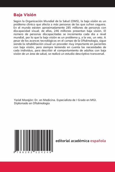 Según la Organización Mundial de la Salud (OMS), la baja visión es un problema clínico que afecta a más personas de las que sufren ceguera. En el mundo existen aproximadamente 285 millones de personas con discapacidad visual; de ellas, 246 millones presentan baja visión. El número de personas discapacitadas se incrementa cada día a nivel mundial, por lo que la baja visión es un problema y, a la vez, un reto. A pesar de los avances tecnológicos en el campo de la Oftalmología, sigue siendo la rehabilitación visual un proceder muy importante en pacientes con baja visión, pero siempre teniendo en cuenta las necesidades de cada individuo, para describir el comportamiento de adultos con baja visión de un área de salud, se realizó un estudio descriptivo transversal.