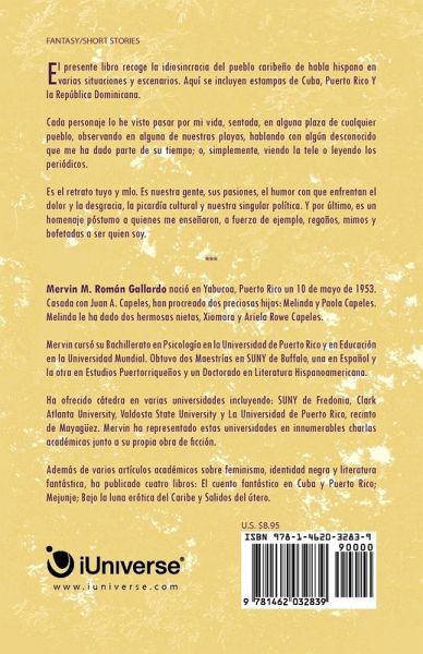 El presente libro recoge la idiosincracia del pueblo caribeno de habla hispana en varias situaciones y escenarios. Aqui se incluyen estampas de Cuba, Puerto Rico Y la Republica Dominicana. Cada personaje lo he visto pasar por mi vida, sentada, en alguna plaza de cualquier pueblo, observando en alguna de nuestras playas, hablando con algun desconocido que me ha dado parte de su tiempo; o, simlemente, viendo la tele o leyendo los periodicos. Es el retrato tuyo y mio. Es nuestra gente, sus pasiones, el humor con que enfrentan el dolor y la desgracia, la picardia cultural y nuestra singular politica. Y por ultimo, es un homenaje postumo a quienes me ensenaron, a fuerza de ejemplo, reganos, mimos y bofetadas a ser quien soy.