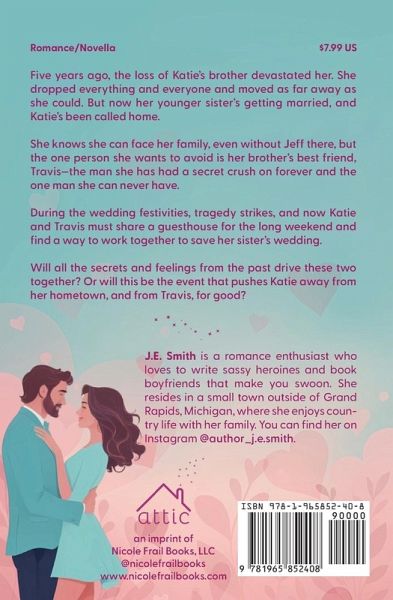 Five years ago, the loss of Katie's brother devastated her. She dropped everything and everyone to flee to Michigan. There, she could mask her pain and throw herself into her work as a baker. She could pretend any discomfort didn't exist. But now her baby sister is getting married and she has to return to her hometown. She can face her family, even without Jeff there, but the one person she wants to avoid is her brother's best friend, Travis-the man she has had a secret crush on forever and the one man she can never have. During the wedding festivities, tragedy strikes, and now Katie and Travis must share a guesthouse and work together to save her sister's wedding. Will all the secrets and feelings from the past drive these two together? Or will this be the event that pushes Katie away from her hometown, and from Travis, forever? This novella originally appeared as a short story in the anthology Recipes for Romance, released by And You Press, an imprint of Nicole Frail Books, in January 2025. It has since been expanded to explore Katie and Travis's story.