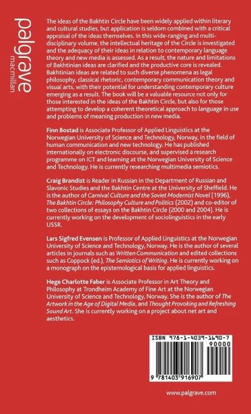 In this multi-disciplinary volume, comprising the work of several established scholars from different countries, central concepts associated with the work of the Bakhtin Circle are interrogated in relation to intellectual history, language theory and an understanding of new media. The book will prove an important resource for those interested in the ideas of the Bakhtin Circle, but also for those attempting to develop a coherent theoretical approach to language in use and problems of meaning production in new media.