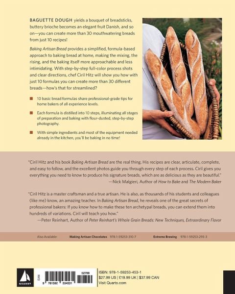 While "bread" once implied a simple, sliced white loaf from the supermarket, consumers have begun to consider the product in a more sophisticated light. Bread enthusiasts are more aware of the diverse array of high-quality breads than ever before and are seeking out handmade artisan products at local farmers' markets, organic grocery stores, specialty shops...even the Internet. "Baking Artisan Bread" will show that finding these specialty breads is as easy as looking in your own kitchen! "Baking Artisan Bread" provides a simplified, formula-based approach to baking bread at home, making the mixing, the rising, and the baking itself more approachable and less intimidating. With step-by-step full-color process shots and clear directions, chef Ciril Hitz will show you how with just 10 formulas you can create more than 40 different products--how's that for streamlined?