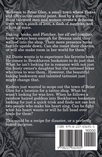 ¿¿¿¿¿¿¿¿¿¿¿¿¿¿¿¿¿¿¿¿¿ Welcome to Briar Glen, a small town where Hexes and Oh's is the central point. Run by a coven, these talented men and women create a delicious treat with a pinch of love, a dash of magicks, and a hint of spice. ¿¿¿¿¿¿¿¿¿¿¿¿¿¿¿¿¿¿¿¿¿ Baking, books, and Fletcher, her elf owl familiar, have always been enough for Brenna until they walked into the shop. Their mere presence turns her life upside down. Can she resist their charms, or will she make room in her world for them? All Dante wants is to experience his favorite book. He comes to Brookhaven bookstore to do just that. What he isn't looking for is romance with not just the feisty owner's daughter but the tattooed biker who tries to woo them both. However, the beautiful baking bookworm and talented tattooist just might change that. Kadren just wanted to scope out the town of Briar Glen for a location for a tattoo shop. What he wasn't looking for was love. When he follows a rainbow haired goddess into Bookhaven bookstore looking for just a quick trisk and finds not one but two people who make his heart sing. Can he fight what his heart wants or will he fall head over heels for them both? This could be a recipe for disaster, or a perfectly baked surprise.