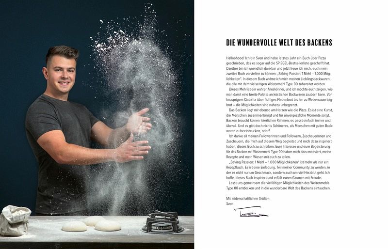 Nach seinem letzten Buch Pizza Passion , dem Mega-Bestseller über perfekte Pizza, bringt er mit Baking Passion jetzt eine überraschend vielfältige Auswahl an Broten, Baguettes, fluffigen Subs, Brioche-Burger-Buns, Ciabattas, Focaccias, Fladenbroten, Wraps, Flammkuchen und Muffins sowie Pidesi, Naan, Simit und Bagels auf den Tisch: natürlich alles mit höchstem Anspruch an das perfekte Ergebnis und gebacken mit einer einzigen Mehlsorte, dem italienischen Weizenmehl Type 00. Durch die leicht verständlichen Anleitungen zur Teigverarbeitung von Sven entstehen Backergebnisse, die sich kaum jemand selbst zugetraut hätte. So können nicht nur Anfänger oder Neulinge schnell Erfolgserlebnisse auf höchstem Niveau erreichen, auch erfahrene Backenthusiasten sind von seinen perfekten Teigen überzeugt und folgen zu Hunderttausenden seinen Pizza-Kanälen bei Instagram, TikTok und YouTube.