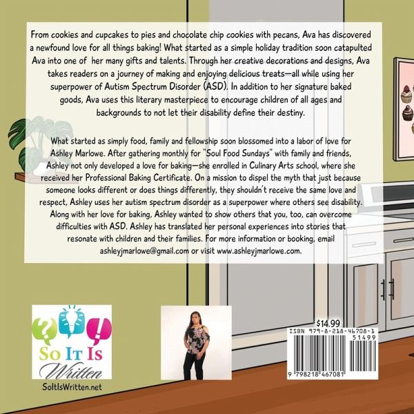 From cookies and cupcakes to pies and chocolate chip cookies with pecans, Ava has discovered a newfound love for all things baking! What started as a simple holiday tradition soon catapulted Ava into one of her many gifts and talents. Through her creative decorations and designs, Ava takes readers on a journey of making and enjoying delicious treats-all while using her superpower of Autism Spectrum Disorder (ASD). In addition to her signature baked goods, Ava uses this literary masterpiece to encourage children of all ages and backgrounds to not let their disability define their destiny.