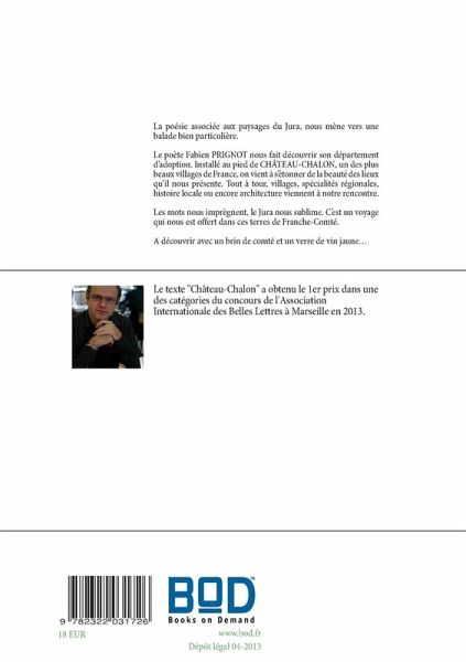 La poésie associée aux paysages du Jura, nous mène vers une balade bien particulière.Le poète Fabien PRIGNOT nous fait découvrir son département d'adoption. Installé au pied de CHÂTEAU-CHALON, un des plus beaux villages de France, on vient à s'étonner de la beauté des lieux qu'il nous présente. Tout à tour, villages, spécialités régionales, histoire locale ou encore architecture viennent à notre rencontre.Les mots nous imprègnent, le Jura nous sublime. C'est un voyage qui nous est offert dans ces terres de Franche-Comté.A découvrir avec un brin de comté et un verre de vin jaune...