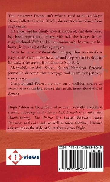 The American Dream ain't what it used to be, as Major Henry Gillette Powers, USMC, discovers on his return from Afghanistan. His sister and her family have disappeared, and their home has been repossessed, along with half the houses in the neighborhood. With the help of Jeanine, who has also lost her home, he learns fast what's going on. What he unearths about the mortgage business awakens long-buried sides of his character, and corpses start to drop in his wake as he travels from Ohio to New York. Meanwhile on Wall Street, Kendra Hampton, financial journalist, discovers that mortgage traders are dying in very messy ways. Hampton and Powers are now on a collision course as events race towards a climax that could mean the death of dozens. The Great Recession of 2008 was ten years ago, but the effects are still with us, and for the most part those responsible have yet to face justice. This novel looks at what might have been if one man had discovered the truth and taken the law into his own hands. It also contains a guide, written by a professional, on what to do if you find yourself bullied by the financial houses.