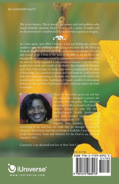 This is not abstract. This is about a real person with real problems who found workable solutions. People of faith and a variety of readers will see the potential of a transformed life, beyond their capacity to imagine.
