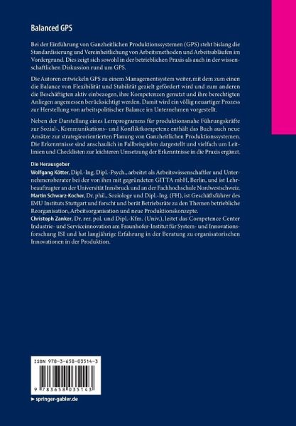 Bei der Einführung von Ganzheitlichen Produktionssystemen (GPS) steht bislang die Standardisierung und Vereinheitlichung von Arbeitsmethoden und Arbeitsabläufen im Vordergrund. Dies zeigt sich sowohl in der betrieblichen Praxis als auch in der wissenschaftlichen Diskussion rund um GPS. Die Autoren entwickeln GPS zu einem Managementsystem weiter, mit dem zum einen die Balance von Flexibilität und Stabilität gezielt gefördert wird und zum anderen die Beschäftigten aktiv einbezogen, ihre Kompetenzen genutzt und ihre berechtigten Anliegen angemessen berücksichtigt werden. Damit wird ein völlig neuartiger Prozess zur Herstellung von arbeitspolitischer Balance im Unternehmen vorgestellt. Neben der Darstellung eines Lernprogramms für produktionsnahe Führungskräfte zur Sozial-, Kommunikations- und Konfliktkompetenz enthält das Buch auch neue Ansätze zur strategieorientierten Planung von Ganzheitlichen Produktionssystemen. Die Erkenntnisse sind anschaulich in Fallbeispielen dargestellt und vielfach um Leitlinien und Checklisten zur leichteren Umsetzung der Erkenntnisse in die Praxis ergänzt.
