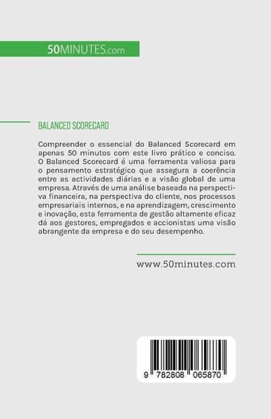 Compreender o essencial do Balanced Scorecard em apenas 50 minutos com este livro prático e conciso. O Balanced Scorecard é uma ferramenta valiosa para o pensamento estratégico que assegura a coerência entre as actividades diárias e a visão global de uma empresa. Através de uma análise baseada na perspectiva financeira, na perspectiva do cliente, nos processos empresariais internos, e na aprendizagem, crescimento e inovação, esta ferramenta de gestão altamente eficaz dá aos gestores, empregados e accionistas uma visão abrangente da empresa e do seu desempenho. Este livro fornecerá uma introdução útil aos indicadores de meios e indicadores de desempenho ligados ao Balanced Scorecard, incluindo quota de mercado, fidelidade dos clientes e satisfação dos empregados. Também apresenta conselhos práticos para a implementação da ferramenta, um esboço dos seus principais benefícios e inconvenientes, incluindo a não integração total do ambiente externo, e uma discussão exaustiva de um estudo de caso. Sobre o Balanced Scorecard : O Balanced Scorecard combina estratégia e gestão, e utiliza uma gama de indicadores de desempenho para dar uma visão abrangente dos objectivos e tácticas de curto e longo prazo de uma empresa. Ao contrário de quadros anteriores, que tendiam a ser menos dinâmicos e baseados em informação antiga, o Balanced Scorecard tem em conta indicadores operacionais, clientes e pessoas para dar uma avaliação muito mais completa da empresa. Neste livro, descobrirá como o Balanced Scorecard pode ajudar o seu negócio, aprender sobre os diferentes componentes do modelo e obter uma compreensão dos numerosos indicadores envolvidos. Uma explicação clara dos benefícios e potenciais inconvenientes do método, uma discussão de um estudo de caso prático, e uma série de dicas práticas dar-lhe-ão as ferramentas necessárias para adaptar a sua abordagem à sua situação.