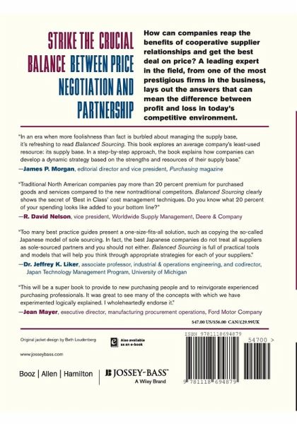 Every year, the typical manufacturing company spends 50 to 75 percent of its revenues on outside goods and services. And a dramatic increase in the outsourcing of non-core activities has heightened management's concern with purchasing in the non-manufacturing sector as well. As a result, effective buying has become one of the most challenging strategic issues of the day. In this book, Tim Laseter--of the world-renowned consulting firm Booz-Allen & Hamilton--shows companies how to address that challenge through the dynamic pursuit of balanced sourcing. Laseter and Booz-Allen coined the term balanced sourcing to describe a model for ensuring competitive pricing from suppliers while simultaneously nurturing cooperative relationships. Drawing upon Booz-Allen's experiences with leading companies, Balanced Sourcing lays out the six organizational capabilities that make up the firm's field-tested strategy. Separate chapters highlight key principles for developing each capability and delivering near-term results. Detailed case studies of four prominent corporations-Honda of America, Cisco Systems, SUPERVALU, and Florida Power & Light-demonstrate the broad applicability of the model for companies in industries from manufacturing to services to high-tech. Balanced Sourcing offers real-life lessons from around the world in such key areas as creating sourcing strategies, building and sustaining supplier relationships, and leveraging supplier innovation. Though written for senior executives who want to drive transformation in their organizations, Balanced Sourcing also provides practical advice to purchasing executives who want to understand their role in implementing the best practices of their profession.