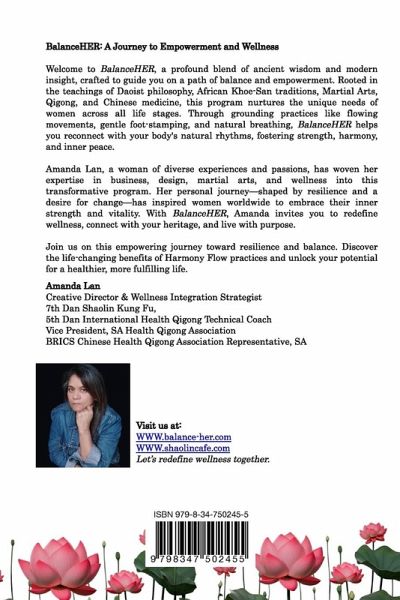 BalanceHER: A Journey to Empowerment and Wellness Welcome to BalanceHER, a profound blend of ancient wisdom and modern insight crafted to guide you on a path of balance and empowerment. Rooted in the teachings of Daoist philosophy, African Khoe-San traditions, Martial Arts, Qigong, and Chinese medicine, this program is designed to nurture the unique needs of women across all life stages. Through grounding practices like flowing movements, gentle foot stamping, and natural breathing, BalanceHER helps you reconnect with your body's natural rhythms, fostering strength, harmony, and inner peace. Amanda Lan, a woman of diverse experiences and passions, has woven her expertise in business, design, martial arts, and wellness into this transformative program. Her personal journey, shaped by resilience and a desire for change, inspires women worldwide to embrace their inner strength and vitality. With BalanceHER, Amanda invites you to redefine wellness, connecting with your heritage and living with purpose. Join us in this empowering journey toward resilience and balance. Discover the lifechanging benefits of Harmony Flow practices and unlock your potential for a healthier, more fulfilling life.