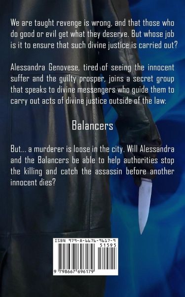 Most major religions teach that revenge is wrong, and that God will accordingly repay those who do good or evil. But whose job is it to ensure that God's justice on earth is carried out? Alessandra Genovese is a student at the John Jay College of Criminal Justice in New York City. She laments the cruelty of the general public. She wants to know that people will suffer the consequences of their evil deeds. A woman named Gabrielle overhears, and asks questions about good and evil, revenge and justice, punishment and reward. When Alessandra says she isn't interested in revenge, but instead, that divine justice will actually be done, Gabrielle invites her to join a special group of people who are the facilitators of divine justice in the world: Balancers.