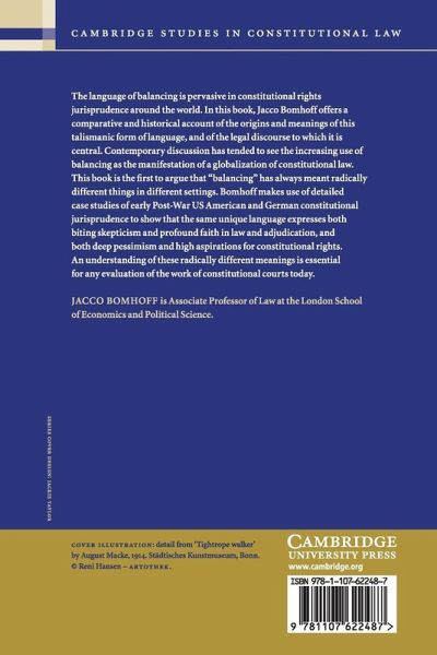 The language of balancing is pervasive in constitutional rights jurisprudence around the world. In this book, Jacco Bomhoff offers a comparative and historical account of the origins and meanings of this talismanic form of language, and of the legal discourse to which it is central. Contemporary discussion has tended to see the increasing use of balancing as the manifestation of a globalization of constitutional law. This book is the first to argue that 'balancing' has always meant radically different things in different settings. Bomhoff uses detailed case studies of early post-war US and German constitutional jurisprudence to show that the same unique language expresses both biting scepticism and profound faith in law and adjudication, and both deep pessimism and high aspirations for constitutional rights. An understanding of these radically different meanings is essential for any evaluation of the work of constitutional courts today.