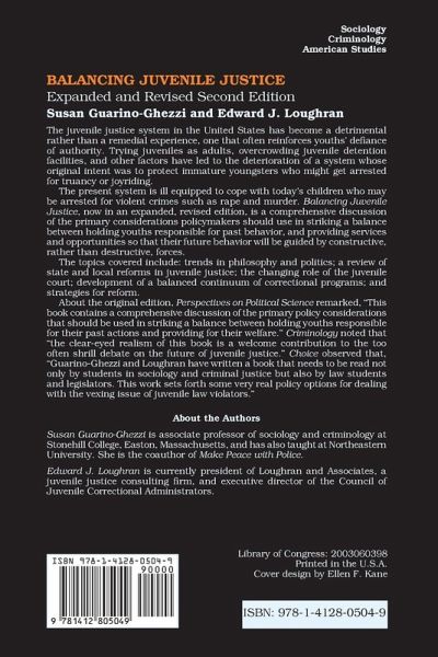 The juvenile justice system in the United States has become a detrimental rather than a remedial experience, one that often reinforces youths' defiance of authority. Trying juveniles as adults, overcrowding juvenile detention facilities, and other factors have led to the deterioration of a system whose original intent was to protect immature youngsters who might get arrested for truancy or joyriding. The present system is ill equipped to cope with today's children who may be arrested for violent crimes such as rape and murder. This has led to an intense pessimism. Balancing Juvenile Justice, now in an expanded, revised edition, is a comprehensive discussion of the primary considerations policymakers should use in striking a balance between holding youths responsible for past behavior, and providing services and opportunities so that their future behavior will be guided by constructive, rather than destructive, forces.The topics covered include: trends in philosophy and politics; a review of state and local reforms in juvenile justice; the changing role of the juvenile court; development of a balanced continuum of correctional programs; and strategies for reform. The authors emphasize that while juvenile offenders should pay for their crimes, it is equally urgent to realize that adult neglect, abuse, rescinding needed resources, and stigmatizing of youth will only ensure that crime and criminal justice become permanent distinguishing features of the United States.This new edition of Balancing Juvenile Justice will be compelling reading for sociologists, criminologists, juvenile justice practitioners, and policymakers.