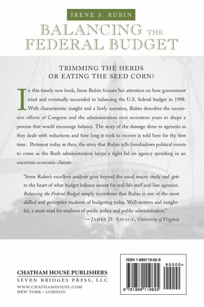 In this timely book Irene Rubin focuses on how government tried and eventually succeeded in balancing the U.S. federal budget in 1998. With characteristic insight and a lively narrative, Rubin describes the successive efforts of Congress and the administration over seventeen years to shape a process that would encourage balance, as well as the reactions of federal agencies to the pressure.