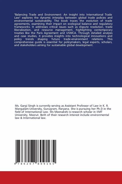 "Balancing Trade and Environment: An Insight into International Trade Law" explores the dynamic interplay between global trade policies and environmental sustainability. The book traces the evolution of trade agreements, examining their impact on ecological balance and regulatory frameworks. It addresses critical issues such as dispute resolution, trade liberalization, and resource management, highlighting contemporary treaties like the Paris Agreement and USMCA. Through detailed analysis and case studies, it provides insights into technological innovations and policy trends shaping future trade-environment relations. This comprehensive guide is essential for policymakers, legal experts, scholars, and stakeholders aiming for sustainable global development.