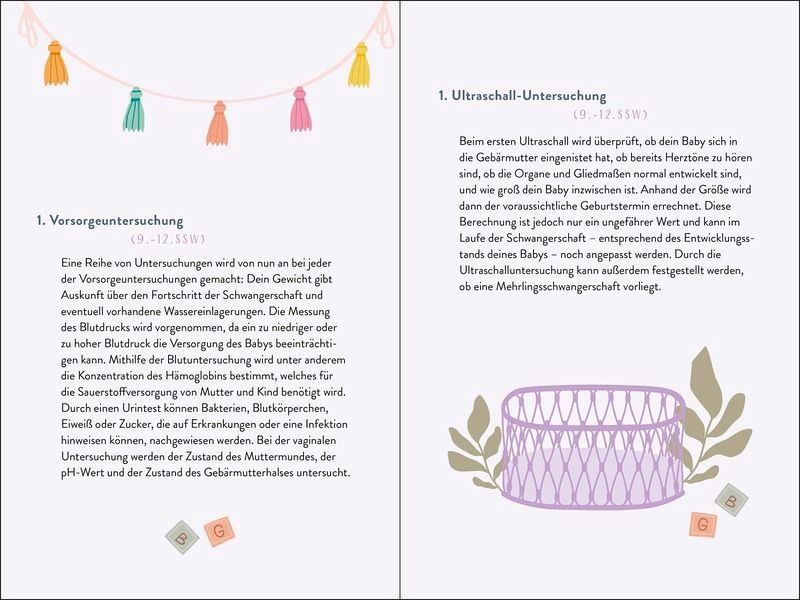 Das Tagebuch zur Schwangerschaft enthält hilfreiche Fragen, die beim Ausfüllen unterstützen, und bietet viel Platz für persönliche Erinnerungen sowie Ultraschallbilder und Fotos. Wertvolle Tipps, zumBeispiel zur Namenssuche oder zum Packen der Tasche fürs Krankenhaus, sowie Impulse, als werdende Mutter auch etwas für sich selbst zu tun, runden das liebevolle Eintragbuch wunderbar ab. Eine Einstecktasche sorgt dafür, dass Notizzettel oder Fotos nicht veloren gehen, und das Gummiband verschließt das Tagebuch optimal. So lässt sich die Vorfreude aufs Baby perfekt zu Papier bringen und es entsteht ein persönliches Erinnerungsbuch an diese außergewöhnliche Zeit!