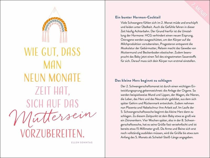 Passende Zitate und wertvolle Tipps zu allen wichtigen Meilensteinen in der SchwangerschaftPraktisches Format im mit Einstecktasche für Notizzettel und verschließbar mit Gummiband - ein toller Begleiter im AlltagZauberhaft und mit viel Liebe zum Detail gestaltet Wunderbares Geschenk für alle Schwangeren und werdende Eltern.