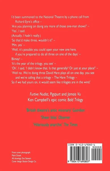 "British Theatre's antic visionary" (Guardian) "We're doing three David Hare plays all on one day, you see and we're calling that a trilogy - The Hare Trilogy - So if we had yours on, it would seem like trilogies were in the wind." (Richard Eyre to Ken Campbell)