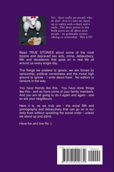 Read TRUE STORIES about some of the most bizarre and depraved sex acts, crime, debauchery, filth and decadence that goes on in real life all around us every single day. The things we pretend to ignore, we are forced by censorship, political correctness and the moral high ground to ignore - I write about here. No editors or censors in the way. You have friends like this. You have done things like this - and so have some of your family members. And you are all going to do it again and again - and so are your neighbours. Here it is, as we truly are - the worst filth and pornography and debauchery…mehr