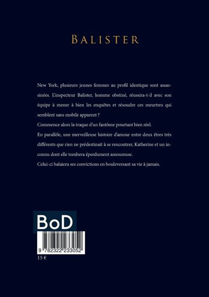 New York, plusieurs jeunes femmes au profil identique sont assassinées. L'inspecteur Balister, homme obstiné, réussira-t-il avec son équipe à mener à bien les enquêtes et résoudre ces meurtres qui semblent sans mobile apparent.Commence alors la traque d'un fantôme pourtant bien réel.En parallèle, une merveilleuse histoire d'amour entre deux êtres très différents que rien ne prédestinait à se rencontrer, Katherine et un inconnu dont elle tombera éperdument amoureuse.Celui-ci balaiera ses convictions en bouleversant sa vie à jamais.