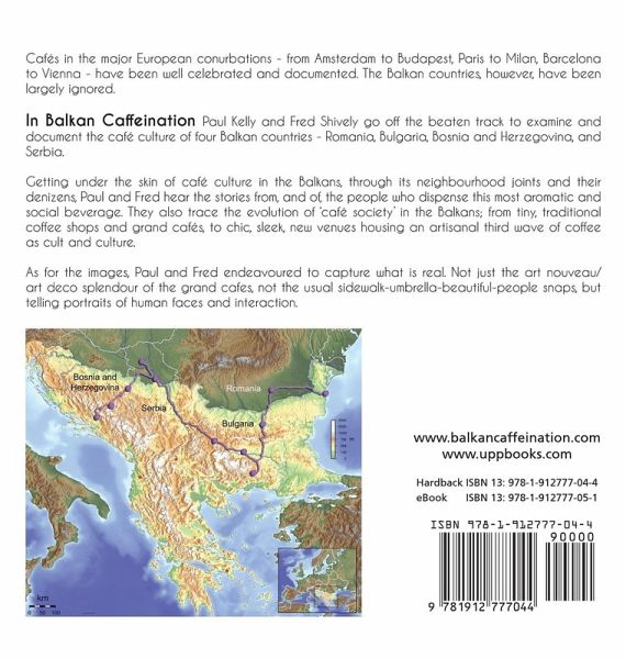Cafés in the major European conurbations - from Amsterdam to Budapest, Paris to Milan, Barcelona to Vienna - have been well celebrated and documented. The Balkan countries, however, have been largely ignored. In Balkan Caffeination Paul Kelly and Fred Shively go off the beaten track to examine and document the café culture of four Balkan countries - Romania, Bulgaria, Bosnia and Herzegovina, and Serbia. Getting under the skin of café culture in the Balkans, through its neighbourhood joints and their denizens, Paul and Fred hear the stories from, and of, the people who dispense this most aromatic and social beverage. They also trace the evolution of ‘café society’ in the Balkans; from tiny, traditional coffee shops and grand cafés, to chic, sleek, new venues housing an artisanal third wave of coffee as cult and culture. As for the images, Paul and Fred endeavoured to capture what is real. Not just the art nouveau/art deco splendour of the grand cafes, not the usual sidewalk-umbrella-beautiful-people snaps, but telling portraits of human faces and interaction. Paul Kelly and Fred Shively have been professional communicators, sometimes photographers, always café/coffee lovers and insatiable travellers/flaneurs for more years than many of you have had... hot drinks.