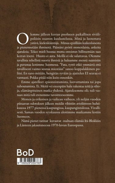 Syksyllä 2019 Olen kävellyt paljon ja lepohetki olisi tarpeen mutta ilta on vielä nuori ja aistit avoinna haluan jatkaa kävelemistä, katselemista ja tuntemista. Muistot palaavat mieleen ja näen vuosikymmenten takaiset tapahtumat selkeinä aivan kuin elokuvassa jossa minä esitän naispääosaa. Istun ennestään tuttuun paikkaan, penkille Mustan Meren rannalla. Romaniassa talvella 1976. Virallinen majapaikkani on toisella puolella maata hotellissa. Majoitun kuitenkin rangaistuksen uhalla romanialaiseen kotiin. Vaikka sellaista ei virallisesti hyväksytä, asia on sovittu talonväen kanssa etukäteen. Olen varovainen ja huomaamaton, en saa paljastua ulkomaalaiseksi. Kaikkia ihmisiä pitää varoa, ilmiantaminen on tavallista ja joissakin tapauksissa tuottoisaa. Olen nyt yksin talossa ja ajattelen kaikenlaista, pelkäänkin. Jouluun on vain vähän aikaa. Laittaisinko aterialle myös jotakin suomalaista?