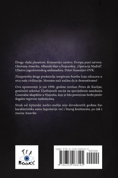 Droga vlada planetom. Kosmetsko carstvo. Evropa puni zatvore. Otrovana Amerika. Albanski klan u vajcarskoj. "Operacija Madrid". Ubistvo jugoslovenskog ambasadora. Dileri finansijeri OVK. Zloupotreba droge predstavlja tempiranu bombu koja otkucava u srcu nae civilizacije. Moramo näi näina da je demontiramo! Ovo upozorenje je jo 1990. godine izrekao Peres de Kueljar, generalni sekretar OUN-a na specijalnom zasedanju Generalne skuptine u Njujorku, koje je bilo posve¿eno borbi protiv ilegalne trgovine narkoticima. Strah od iptarske narko-mafije nije devedesetih godina bio karakteristika samo Jugoslavije ve¿ i Starog kontinenta, pa ¿ak i möne Amerike.