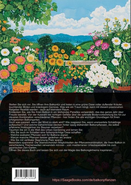 Entdecken Sie die vielfältigen Möglichkeiten der Balkonbegrünung und des Urban Gardening mit diesem praktischen Ratgeber. Von der grundlegenden Standortanalyse bis zur kreativen Gestaltung Ihres persönlichen Balkongartens werden alle wichtigen Aspekte ausführlich behandelt.Der erste Teil widmet sich den Grundlagen der Balkon Bepflanzung: Lernen Sie, wie Sie die Lichtverhältnisse richtig einschätzen, welche Balkon und Kübelpflanzenerde sich für welche Pflanzen eignet und wie Sie ein durchdachtes Bewässerungssystem einrichten. Praktische Tipps zur Auswahl geeigneter Pflanzgefäße und zur optimalen Nährstoffversorgung mit dem richtigen Blumendünger für Balkonpflanzen runden diesen Abschnitt ab.Im Bereich Pflanzenauswahl erhalten Sie detaillierte Informationen zu winterharten Gehölzen, blühenden Balkonpflanzen und Nutzpflanzen für Ihren grünen Balkon. Besonders wertvoll sind die Hinweise zu verschiedenen Gestaltungskonzepten - von der vertikalen Begrünung bis hin zu thematischen Balkongärten.Der Pflegeteil bietet einen strukturierten Überblick über saisonale Arbeiten, biologischen Pflanzenschutz und erfolgreiche Überwinterungsmethoden. Zahlreiche Praxistipps zum Urban Gardening auf dem Balkon helfen Ihnen dabei, Ihren Balkongarten das ganze Jahr über attraktiv zu gestalten.Besonders hilfreich sind die konkreten Anleitungen zur:- Auswahl standortgerechter Balkonpflanzen- Verwendung der richtigen Substrate- Pflege verschiedener Pflanzengruppen- Gestaltung mit Farben und Formen- Kultivierung von Nutzpflanzen in GefäßenDieses Buch wurde unter Verwendung innovativer Technologien wie Künstlicher Intelligenz sowie eigens entwickelter Tools erstellt - etwa bei der Ideenfindung, der Recherche, dem Schreiben, dem Lektorat, der Qualitätssicherung und der Gestaltung dekorativer Illustrationen.So möchten wir Ihnen ein besonders stimmiges, modernes und noch hochwertigeres Leseerlebnis bieten.