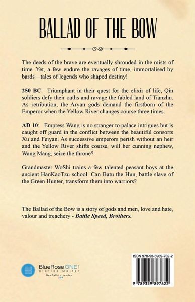 Time shrouds the deeds of men, yet some tales endure its ravages, immortalised by bards-legends who shaped destiny. 250 BC: Triumphant in their quest for the elixir of life, Qin soldiers defy their oaths and ravage the fabled land of Tianzhu. As retribution, the Aryan gods demand the firstborn of the Emperor when the Yellow River changes course three times. AD 10: In Han, ZhengJun is chosen as the first princess consort because she was conceived under the constellation of the Trident, the symbol of a powerful god. An ancient prophecy unfolds, heralding the birth of an extraordinary warrior prince, yet destined not to rule. When Emperor Cheng's consorts fail to bear children, they turn in desperation to the witchcraft of midwife Fang. As successive emperors perish without an heir and the Yellow River shifts course, will Empress Wang Zhengjun's cunning nephew, WangMang, seize the imperial throne? Grandmaster WoShi trains a few talented peasant boys at the ancient HanKaoTzu school. Can Batu the Hun, battle slave of the Green Hunter; JiaShao, the enigmatic dwarf chief; and HuKui, the rebel scholar, transform them into warriors? The Ballad of the Bow is a tale of gods and men, love and hate, valour and treachery. Battle Speed, Brothers.