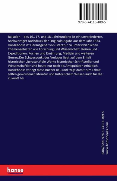 Balladen - des 16., 17. und 18. Jahrhunderts ist ein unveränderter, hochwertiger Nachdruck der Originalausgabe aus dem Jahr 1874.