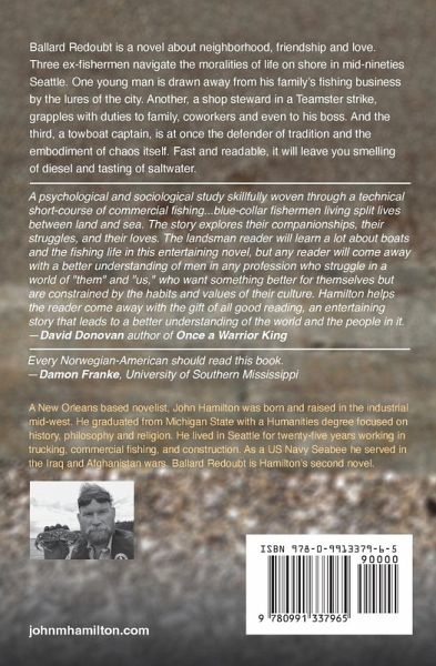 Ballard Redoubt is a novel about neighborhood, friendship and love. Three ex-fishermen navigate the moralities of life on shore in mid-nineties Seattle. One young man is drawn away from his family's fishing business by the lures of the city. Another, a shop steward in a Teamster strike, grapples with duties to family, coworkers and even to his boss. And the third, a towboat captain, is at once the defender of tradition and the embodiment of chaos itself. Fast and readable, it will leave you smelling of diesel and tasting of saltwater.