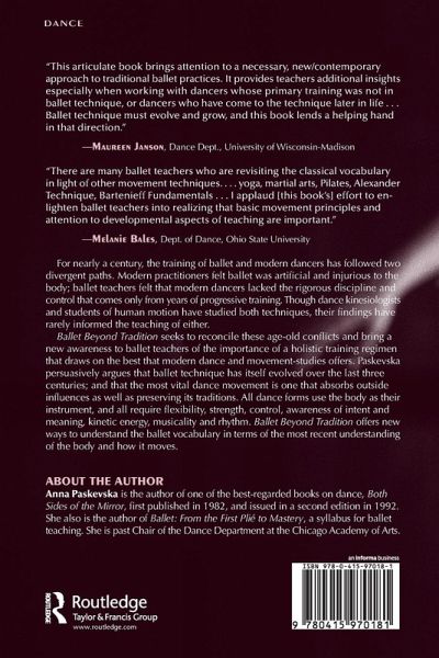 For nearly a century, the training of ballet and modern dancers has followed two divergent paths. Modern practitioners felt ballet was artificial and injurious to the body; ballet teachers felt that modern dancers lacked the rigorous discipline and control that comes only from years of progressive training. Ballet Beyond Tradition seeks to reconcile these age-old conflicts and bring a new awareness to ballet teachers of the importance of a holistic training regimen that draws on the best that modern dance and movement-studies offers.