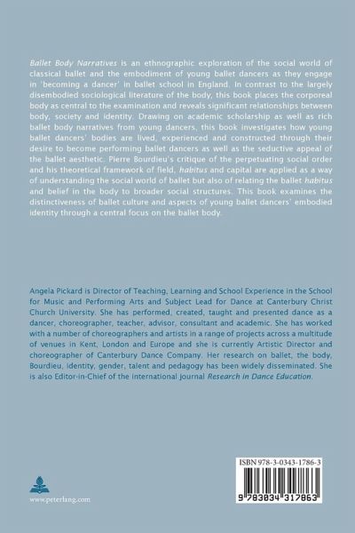 Ballet Body Narratives is an ethnographic exploration of the social world of classical ballet and the embodiment of young ballet dancers as they engage in «becoming a dancer» in ballet school in England. In contrast to the largely disembodied sociological literature of the body, this book places the corporeal body as central to the examination and reveals significant relationships between body, society and identity. Drawing on academic scholarship as well as rich ballet body narratives from young dancers, this book investigates how young ballet dancers' bodies are lived, experienced and constructed through their desire to become performing ballet dancers as well as the seductive appeal of the ballet aesthetic. Pierre Bourdieu's critique of the perpetuating social order and his theoretical framework of field, habitus and capital are applied as a way of understanding the social world of ballet but also of relating the ballet habitus and belief in the body to broader social structures. This book examines the distinctiveness of ballet culture and aspects of young ballet dancers' embodied identity through a central focus on the ballet body.