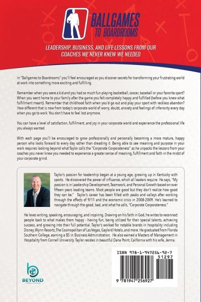 "Read this book for new ideas to make you a better leader." - Mark Sanborn – President, Sanborn & Associates Inc. Bestselling Author of The Fred Factor and You Don't Need a Title to be a Leader "Taylor Scott has brilliantly packaged a way forward for Millennials and leaders of Millennials to not only coexist in Corporate America, but to also transform menial jobs into meaningful work. If you loved playing sports as a kid or even as an adult, but find yourself stuck in a career hamster wheel, this book is for you. Prepare to reignite the child-like faith you had back then, realizing actionable steps toward new realms of happiness and success today." - Eric Chester - Bestselling Author of On Fire At Work: How Great Companies Ignite Passion in Their People Without Burning Them Out, Award Winning Keynote Speaker, and the Founder of the Center for Work Ethic Development. The Problem: Millennials and those leading Millennials as today’s front-line employees, entry-level managers, middle managers, and even some executives, are caught in the proverbial hamster-in-a-wheel that is Corporate America. A lack of inspiration and motivation looms over people who spend their days, trudging through life as real life ‘Eyeores’. Many are okay with the sea of mediocrity that is their daily routines, but others, in fact, the majority, have a desire for more; for better days and a more enjoyable, meaningful, fulfilling, and a more productive life – at work and at home. Yet, beautiful, smart, intelligent, creative, and really great people are simply stuck, dead in their tracks. The Millennial generation gets frustrated, fed up, and all too often they’re quick to shut down communication with peers and leaders. This prevents those very peers and leaders from seeing their full talent, potential, and beauty. Furthermore, and possibly even scarier, today’s leaders of the Millennial generation get fed up with their teams and individuals they lead. They mistake their attitudes and uncomfortable, social awkwardness for disinterest, lack of urgency and focus. So we're left with a general lack of connection and engagement among teams all throughout Corporate America. Leaders push rather than pull. They manage through fear as opposed to leading with love. They dictate orders, aiming to break people down as opposed to coaching, building them up. In Ballgames to Boardrooms: Lessons From Our Coaches We Never Knew We Needed, Taylor Scott resurfaces what many have forgotten from those simple, yet profound lessons we learned playing sports at a younger age. Our Little League, High School, and College coaches taught us lessons, values, winning principles, and dropped pearl after pearl of wisdom we never knew we needed back then. Taylor is bringing them back to the forefront, and inspiring anyone and everyone who wants a change in their day-to-day grind. The lessons we learned playing sports when we were younger can be applied today, in the midst of our busy, frustrating, often demoralizing, and stressful corporate climb.