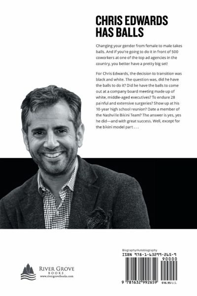 Changing your gender from female to male takes balls. And if you're going to do it in front of 500 coworkers at one of the top ad agencies in the country, you better have a pretty big set! At a time when the term "transgender" didn't really exist, and with support from family, friends, and a great therapist, Chris Edwards endured 28 surgeries to become the man he always knew he was meant to be. He used what he learned working in advertising along with his ever-present sense of humor to rebrand himself and orchestrate what was quite possibly the most widely accepted and embraced gender transition of its kind. He's a pioneer who changed the perception of an entire community, and his memoir, BALLS, will touch readers' hearts and open their minds. Edwards is funny, brazen, and endearing, and BALLS is the hilarious and moving story about family, friends, and the courage to be your true self. It boldly and fearlessly goes where other trans memoirs haven't. If you've ever felt uncomfortable in your own skin, for whatever reason, you will be inspired and empowered by this book.
