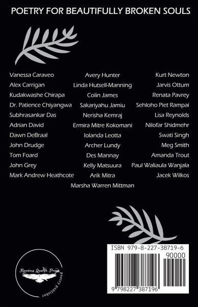A Collection of Poetry for Beautifully Broken Souls from international poets. Featuring: Adrian David Alex Carrigan Amanda Trout Archer Lundy Arik Mitra Avery Hunter Colin James Dawn DeBraal Des Mannay Dr. Patience Chiyangwa Ermira Mitre Kokomani Iolanda Leotta Jacek Wilkos Jarvis Ottum John Drudge John Grey Kelly Matsuura Kudakwashe Chirapa Kurt Newton Linda Hutsell-Manning Lisa Reynolds Mark Andrew Heathcote Marsha Warren Mittman Meg Smith Nerisha Kemraj Nilofar Shidmehr Paul Waliaula Wanjala Renata Pavrey Sakariyahu Jamiu Sehloho Piet Rampai Subhrasankar Das Swati Singh Tom Foard Vanessa Caraveo