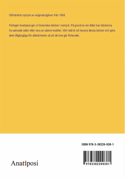 Oförändrat nytryck av originalutgåvan från 1865. Förlaget Anatiposi ger ut historiska böcker i nytryck. På grund av sin ålder kan böckerna ha saknade sidor eller vara av sämre kvalitet. Vårt mål är att bevara dessa böcker och göra dem tillgängliga för allmänheten så att de inte går förlorade.
