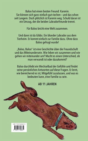 Baloo hat einen besten Freund: Karenin. Sie können sich ganz einfach gut riechen - und das schon seit Langem. Doch plötzlich ist Karenin weg. Schuld daran ist ein Umzug, der die beiden Labradorfreunde trennt. Für Baloo bricht eine Welt zusammen. Und dann ist da Gibbs. Ein blonder Labrador aus dem Tierheim. Er kommt einfach zur Familie dazu. Ohne dass Baloo gefragt wurde! "Baloo, Baloo" ist eine Geschichte über die Freundschaft und das Miteinandersein. Wie leben wir zusammen und wie gehen wir miteinander um? Macht es einen Unterschied, ob man verwandt ist oder dazukommt? Baloo durchlebt ein Wechselbad der Gefühle und findet seine persönlichen Antworten auf diese Fragen. Er lernt, wie bereichernd es ist, Mitgefühl zuzulassen, und was es bedeuten kann, eine Familie zu sein.