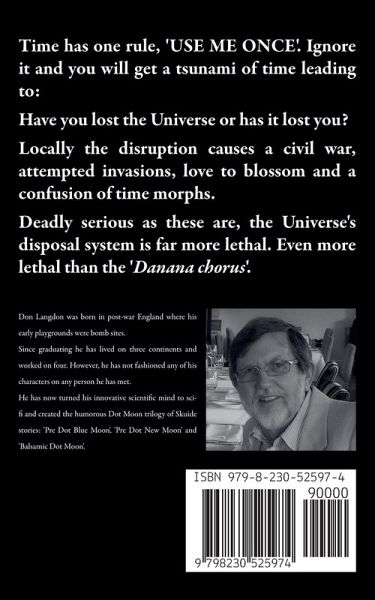 The Skuide are in the final weeks of their '1000 years' planetary experiment. They have two timelines, the original (due for deletion) and the new Dukiesland entity containing the real Gabriel Galesac. Laugh or cry as you follow the Skuide and their friends (human and alien) through the chaos to find the real Gabriel Galesac. When a time tsunami hits, the Skuide's planetary experiment disappears, causing angst to those Skuide watching from afar. The same event maroons a WaiDS expedition in another dimension, where it is joined by an orphan planet with one occupant. Neither is equipped for trans-dimensional travel but the Skuide must find a way home for the sake of the aid workers. On the newish timeline's planet, Musolivy's leaders (Nuno and Freesia) plan to take over the neighbouring countries by using an army of subversives. Failing to do so in Dukiesland, Stanniscan and Hoggeralia, their subversive army is dumped in Dukiesland's No-Go-Zone. The denizens of the No-Go-Zone challenge them to a Tug-Of-War, whereby the winner gets to run the criminal activities of both countries. Cheer your team on. The bookies think they have picked a winner in the Muskies' bio-engineered team, but the lights twinkle as Kedge shines. Deletion cum merger of the original timeline is accelerated by the start of its Armageddon. Lives are saved, but the disturbance in the space-time continuum attracts the Universe's anomaly disposal system, the Inside Out Galaxy (IOG). This viral galaxy is tamed by the Skuide with the help of their trans-dimensional friends. The new timeline's Galesac family use the hooch nuts' vivid recall properties to nullify the Musolivian population's indoctrination. Once reality hits home, a more or less quiet revolution enables the resumption of a peaceful neighbourly co-existence. The Skuide's millennium celebration of the founding of Dukiesland holds many surprises, including the dreadful Danana chorus. Has the Universe's Great Creator's plan worked? Yes, the loose ends have been tidied up.