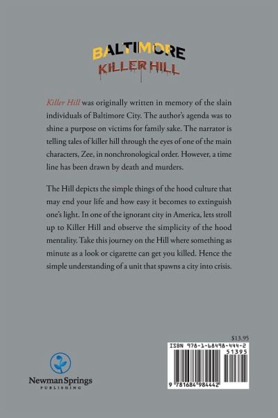 Killer Hill was originally written in memory of the slain individuals of Baltimore City. The author's agenda was to shine a purpose on victims for family sake. The narrator is telling tales of killer hill through the eyes of one of the main characters, Zee, in nonchronological order. However, a time line has been drawn by death and murders. The Hill depicts the simple things of the hood culture that may end your life and how easy it becomes to extinguish one's light. In one of the ignorant city in America, lets stroll up to Killer Hill and observe the simplicity of the hood mentality. Take this journey on the Hill where something as minute as a look or cigarette can get you killed. Hence the simple understanding of a unit that spawns a city into crisis.