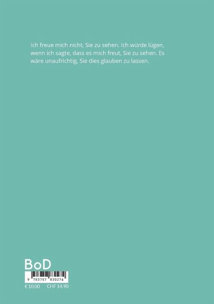 Ich freue mich nicht, Sie zu sehen. Ich würde lügen, wenn ich sagte, dass es mich freut, Sie zu sehen. Es wäre unaufrichtig, Sie dies glauben zu lassen.