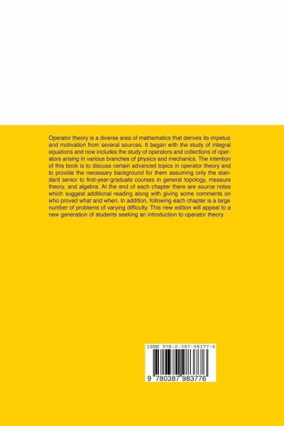 Operator theory is a diverse area of mathematics which derives its impetus and motivation from several sources. It began with the study of integral equations and now includes the study of operators and collections of operators arising in various branches of physics and mechanics. The intention of this book is to discuss certain advanced topics in operator theory and to provide the necessary background for them assuming only the standard senior-first year graduate courses in general topology, measure theory, and algebra. At the end of each chapter there are source notes which suggest additional reading along with giving some comments on who proved what and when. In addition, following each chapter is a large number of problems of varying difficulty. This new edition will appeal to a new generation of students seeking an introduction to operator theory.