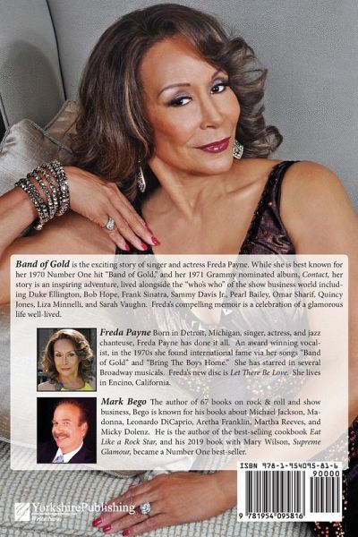 Band of Gold is the exciting story of singer and actress Freda Payne. While she is best known for her 1970 Number One hit "Band of Gold", and her 1971 Grammy nominated album, Contact, her story is an inspiring adventure, lived alongside the "who's who" of the show business world including Duke Ellington, Bob Hope, Frank Sinatra, Sammy Davis Jr., Pearl Bailey, Omar Sharif, Quincy Jones, Liza Minneli, and Sarah Vaughn. Freda's compelling memoir is a celebration of a glamorous life well-lived.