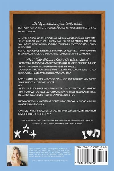Leo Cooper is back in Green Valley to hide. Not fall in love with the tenacious band director who's determined to drag him into the light. After being kicked out of his massively successful rock band, Leo is content to spend Bunco nights with his mom, lay low making snacks, and lick his wounds. He'd rather work in his garden than give any attention to his failed music career. Cut to the gorgeous high school band director relentlessly popping up in his life, making demands, and talking about giving back to the community. Mari Mitchell knows what it's like to be overlooked. She's determined to do whatever it takes to ensure her students get the best shot possible even if that means running herself ragged. And when a former rockstar returns to town, who could be better to help her favorite student make their dreams come true? Does it matter that he's a moody musician who reminds her of a handsome tragic hero of an old-timey movie? NO! She's too busy for things like burning hot physical attraction and chemistry that won't quit. She needs Leo for more than his irresistible drummer arms. No matter how amazing they feel wrapped around her... But what nobody knows is that the hit to Leo's pride was a big one, and Mari might be asking too much. Can these two band together? Or will their painful pasts prevent them from having the future they deserve? 'Band Together' is a full-length contemporary romance and can be read as a standalone. Book #2 in the Teachers' Lounge series, Green Valley Chronicles, Penny Reid Book Universe.