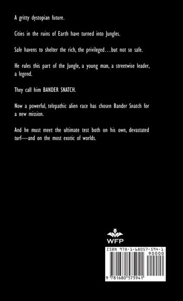 A gritty dystopian future. Cities in the ruins of Earth have turned into Jungles. Safe havens to shelter the rich, the privileged...but not so safe. He rules this part of the Jungle, a young man, a streetwise leader, a legend. They call him BANDER SNATCH. Now a powerful, telepathic alien race has chosen Bander Snatch for a new mission, and he must meet the ultimate test both on his own, devastated turf and the most exotic of worlds.