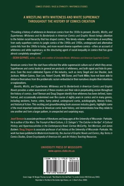 American comics from the start have reflected the white supremacist culture out of which they arose. Superheroes and comic books in general are products of whiteness, and both signal and hide its presence. Even when comics creators and publishers sought to advance an antiracist agenda, their attempts were often undermined by a lack of awareness of their own whiteness and the ideological baggage that goes along with it. Even the most celebrated figures of the industry, such as Jerry Siegel and Joe Shuster, Jack Jackson, William Gaines, Stan Lee, Robert Crumb, Will Eisner, and Frank Miller, have not been able to distance themselves from the problematic racism embedded in their narratives despite their intentions or explanations. Bandits, Misfits, and Superheroes: Whiteness and Its Borderlands in American Comics and Graphic Novels provides a sober assessment of these creators and their role in perpetuating racism throughout the history of comics. Josef Benson and Doug Singsen identify how whiteness has been defined, transformed, and occasionally undermined over the course of eighty years in comics and in many genres, including westerns, horror, crime, funny animal, underground comix, autobiography, literary fiction, and historical fiction. This exciting and groundbreaking book assesses industry giants, highlights some of the most important episodes in American comic book history, and demonstrates how they relate to one another and form a larger pattern, in unexpected and surprising ways.