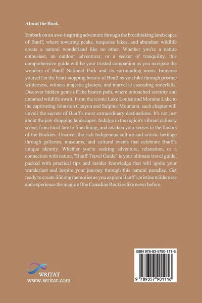 Embark on an awe-inspiring adventure through the breathtaking landscapes of Banff, where towering peaks, turquoise lakes, and abundant wildlife create a natural wonderland like no other. Whether you're a nature enthusiast, an outdoor adventurer, or a seeker of tranquility, this comprehensive guide will be your trusted companion as you navigate the wonders of Banff National Park and its surrounding areas. Immerse yourself in the heart-stopping beauty of Banff as you hike through pristine wilderness, witness majestic glaciers, and marvel at cascading waterfalls. Discover hidden gems off the beaten path, where untouched serenity and untamed wildlife await. From the iconic Lake Louise and Moraine Lake to the captivating Johnston Canyon and Sulphur Mountain, each chapter will unveil the secrets of Banff's most extraordinary destinations. It's not just about the jaw-dropping landscapes. Indulge in the region's vibrant culinary scene, from local fare to fine dining, and awaken your senses to the flavors of the Rockies. Uncover the rich Indigenous culture and artistic heritage through galleries, museums, and cultural events that celebrate Banff's unique identity. Whether you're seeking adventure, relaxation, or a connection with nature, "Banff Travel Guide" is your ultimate travel guide, packed with practical tips and insider knowledge that will ignite your wanderlust and inspire your journey through this natural paradise. Get ready to create lifelong memories as you explore Banff's pristine wilderness and experience the magic of the Canadian Rockies like never before.